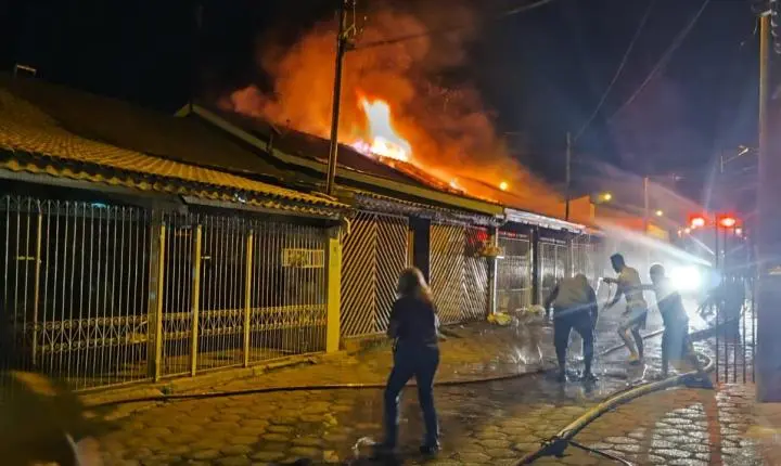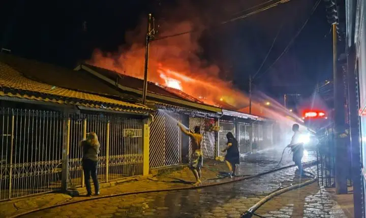 Na noite desta terça-feira (21), por volta das 21h, um incêndio de grandes proporções atingiu quatro residências localizadas na viela de 200 do passeio Tijuca, em Ilha Solteira. O fogo teve início na casa de número 222, onde moram uma mulher, duas crianças e um senhor.