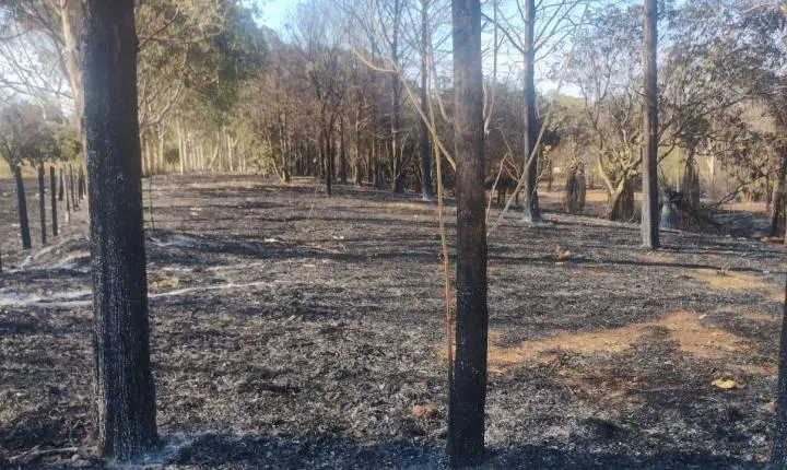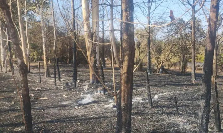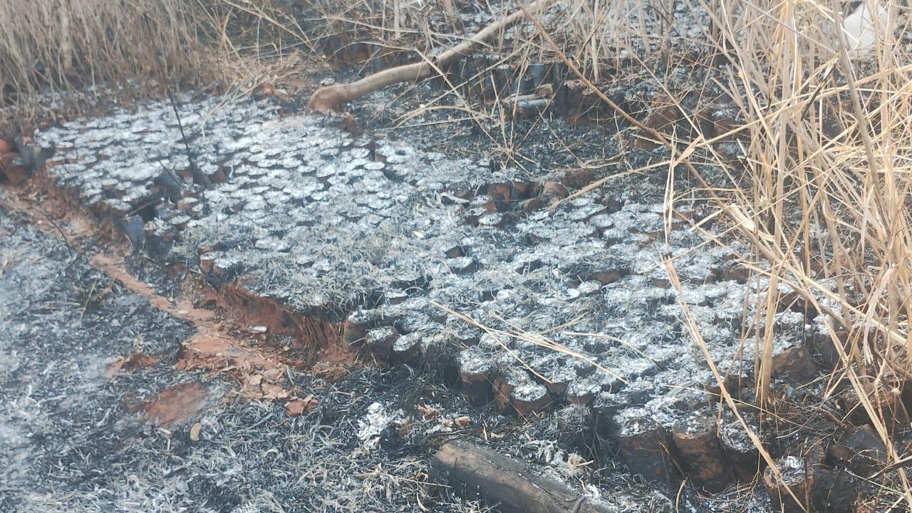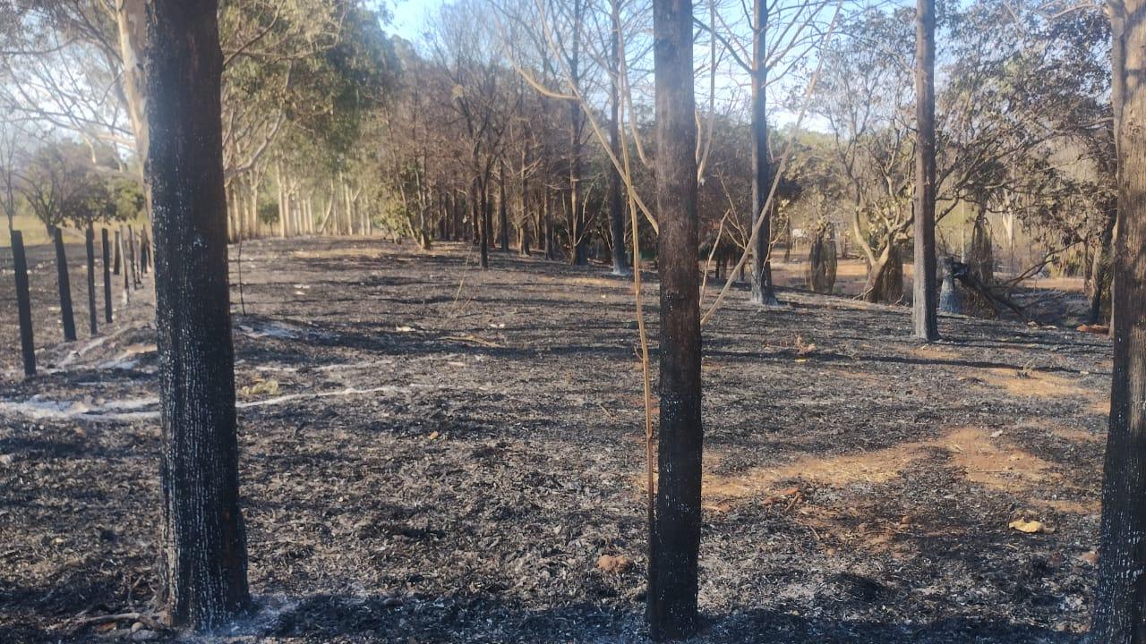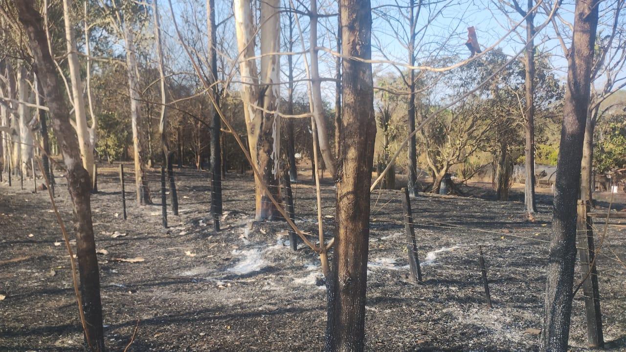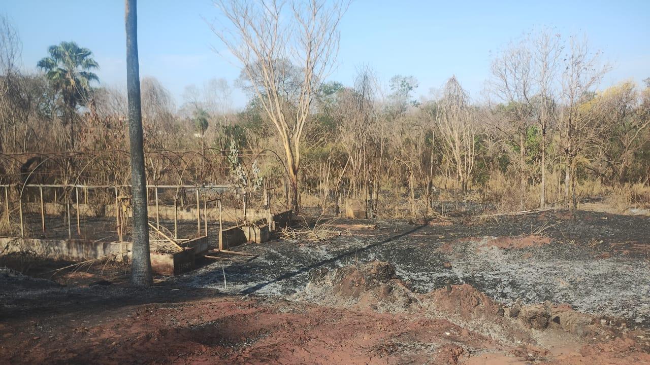 As estruturas de madeira da cerca também foram consumidas pelo fogo. Pequenos focos de incêndio ainda persistem no local, mesmo dois dias após o ocorrido, o que levanta questionamentos sobre a ausência de um rescaldo adequado.